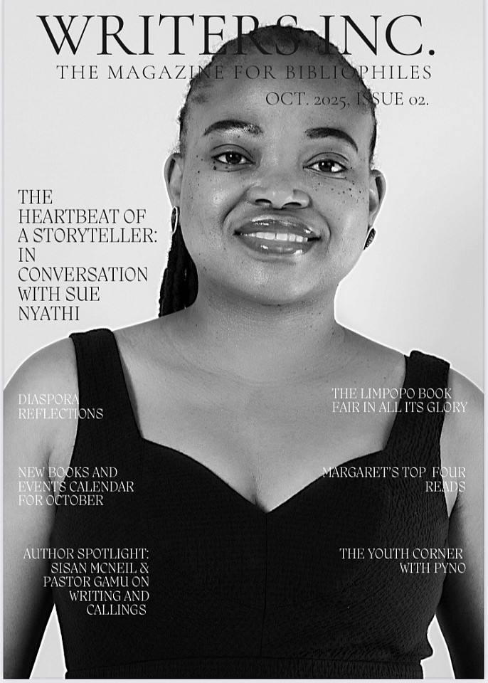 On our cover, we proudly feature the incredible Sue Nyathi—a writer whose books continue to capture hearts and spark conversations across the literary world. Her voice, her journey, and her commitment to storytelling embody exactly what Writers Inc. stands for.